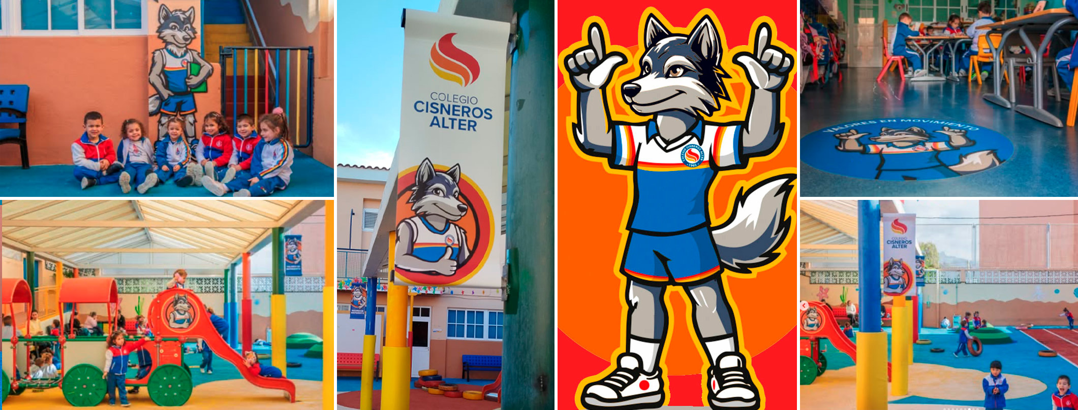 A gener de 2026, l’escola de Tenerife Cisneros Alter acaba de fer pública la seva mascota: un llop simpàtic i amigable. A Branding Escolar hem col·laborat en el redisseny de la identitat visual de l’escola i ara en la creació de la nova mascota. El llop s’ha fet present en les aules, als passadissos i a cada racó de l’escola, compartint cada pas del camí amb els estudiants, com un més de la comunitat. Cisneros Alter (escola vinculada a l’equip de la Superlliga de voleibol que du el seu mateix nom) aposta per una educació en els valors de l’activitat física i l’esport, representats en el tagline de l’escola: #ValoresEnMovimiento ❤️🧡. Des d’ara, el compromís amb seus valors es personalitzarà en la nova mascota: 👥 Equip | 💪 Esforç | ❤️ Respecte